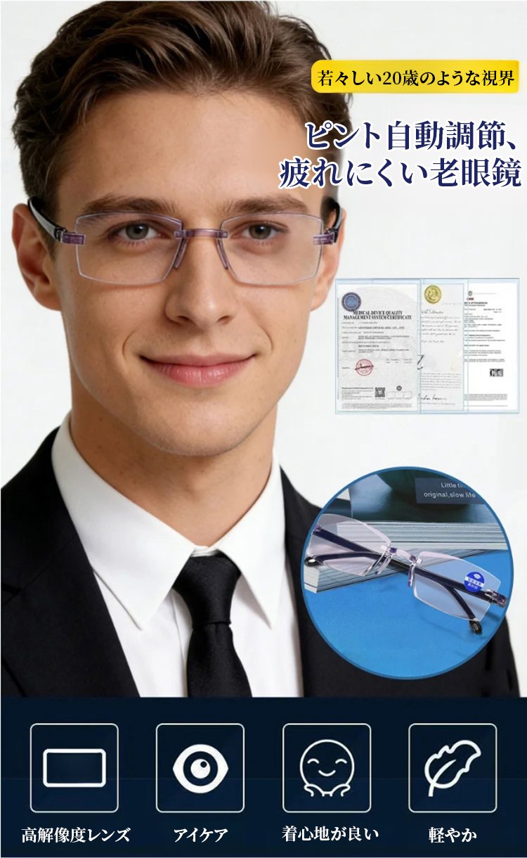 ピント自動調節・疲れにくい老眼鏡